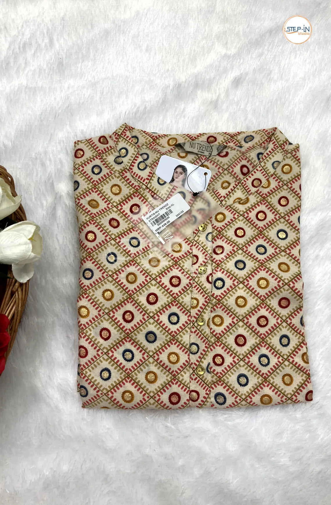 Experience timeless elegance with this embellished silk kurthi in a rich gold hue. Crafted from premium silk, it offers a smooth and comfortable drape, while the delicate embellishments highlight intricate detailing. Ideal for special occasions, this kurthi blends classic artistry with refined style to enhance your festive wardrobe.